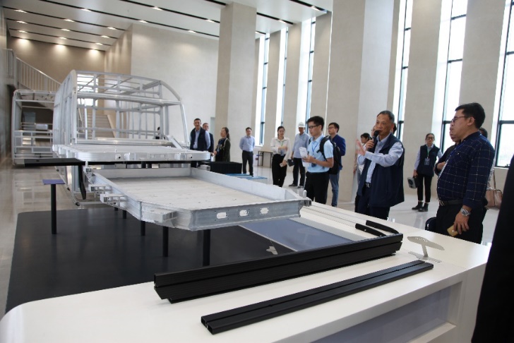 ? ? 當天下午,集團副總經理吳津生帶領與會人員就我公司高端高精鋁材首臺套重大短板裝備項目—輥底爐、鋁合金智能化精深加工生產線——汽車組件事業部生產車間、新能源汽車輕量化總裝生產線進行實地了參觀。